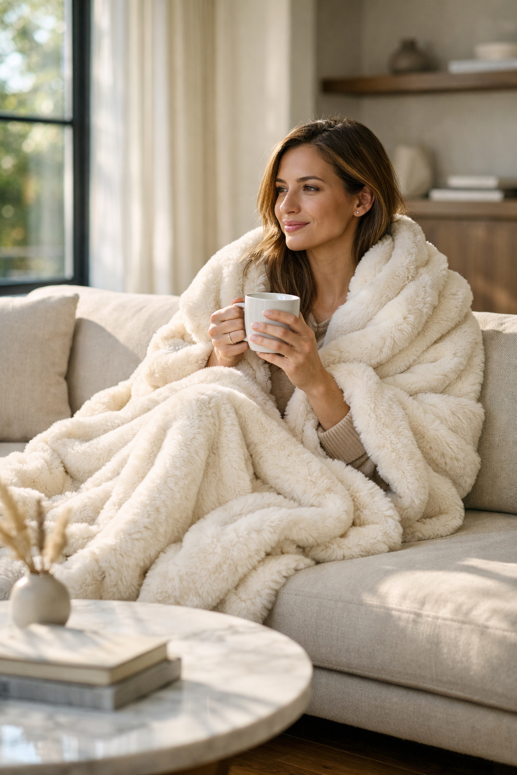 The Champagne Cloud™ is not just a throw. It is the piece that shifts the entire energy of a room the second it lands. Thick, ultra plush, and visually rich, it delivers the kind of depth and presence usually seen in designer homes. The substantial drape, dimensional texture, and timeless ivory tone work effortlessly across modern interiors, making any space feel more refined without overthinking the styling. One layer. Instant elevation.